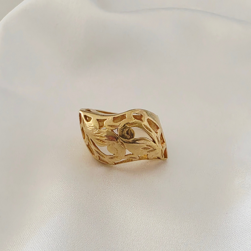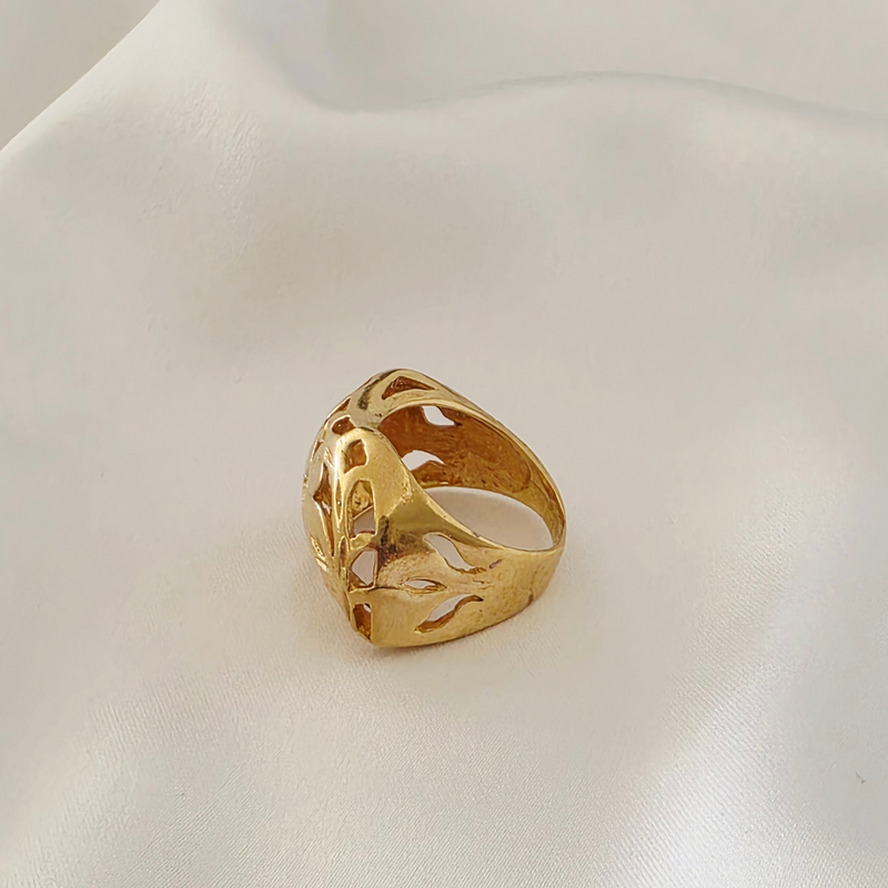 טבעת תחרה גלי זהב גדולה. בסגנון מרוקאי. טבעת עם נוחכות..