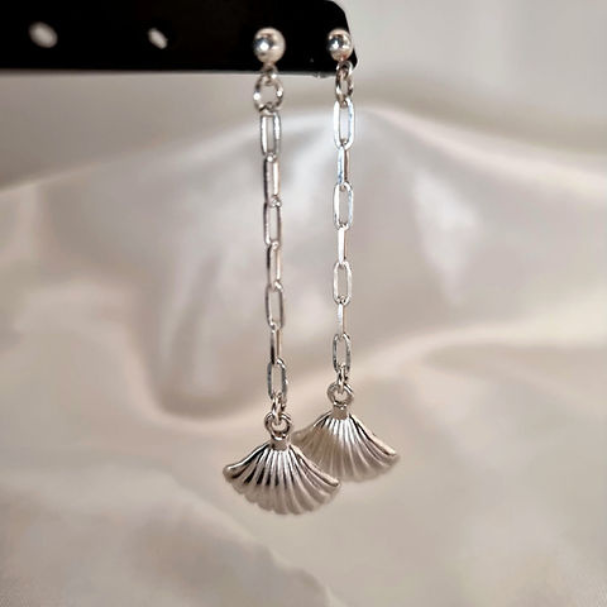 עגילי צדף כסף עם שרשרת גורמט אופנתיים . מתאימים ומחמיאים לכל מטרה . גם לאירוע וגם ליום יום ללבוש קלאסי.